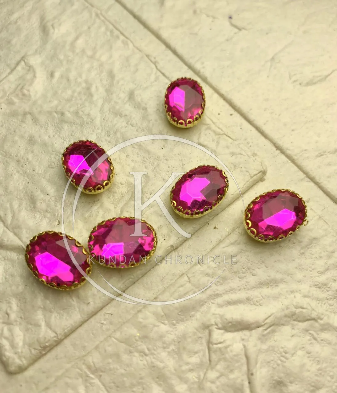 Shocking Pink Oval-Stone Golden Base Medium ( 6Pcs )